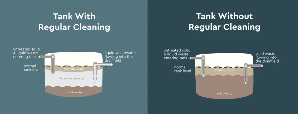 - Sludge and solid waste will accumulate in your tank and build up, eventually leaving the septic tank, entering and clogging the drainfield (your yard could flood or you could have backup in the house)